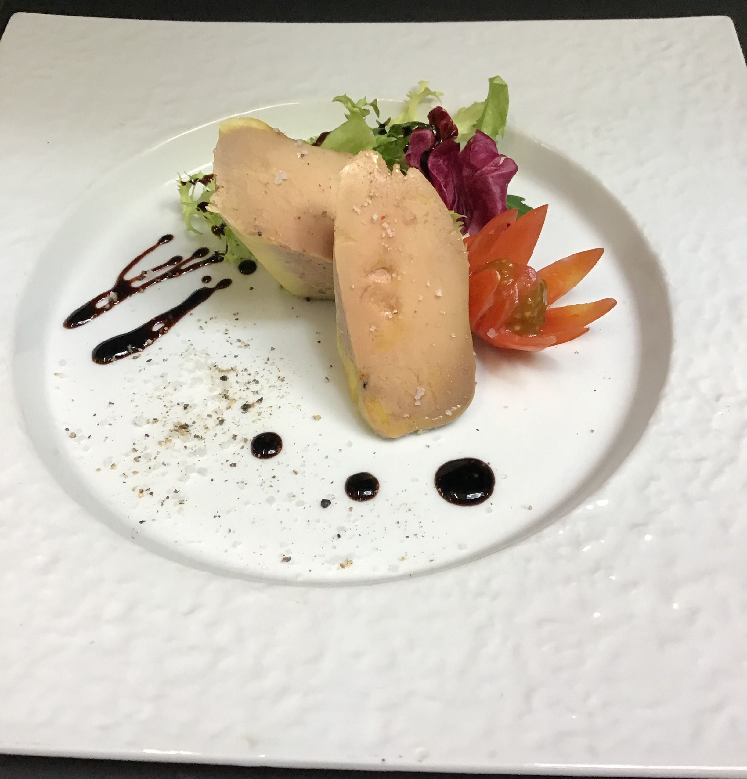 Foie gras maison chips de poire et son pain d'épices 9,50€